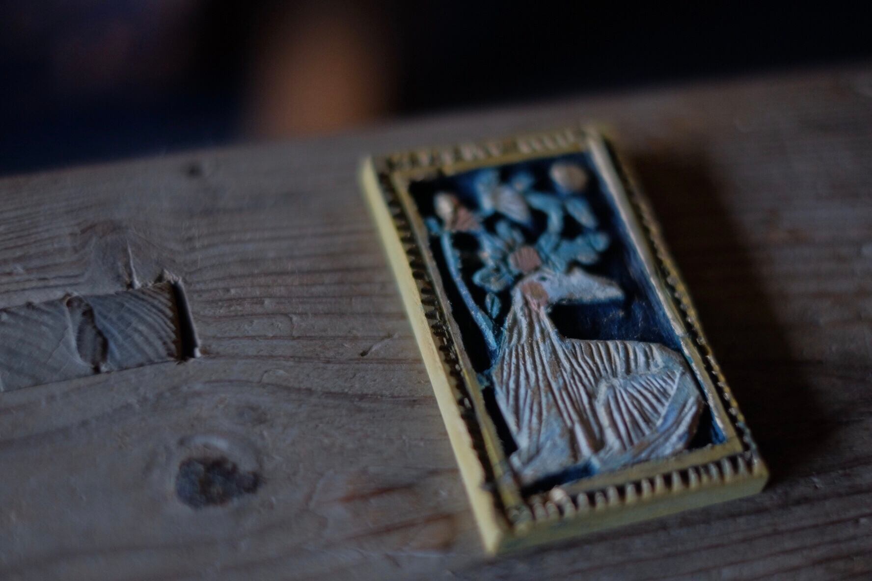 これはちいさい木片を彫ったもので、